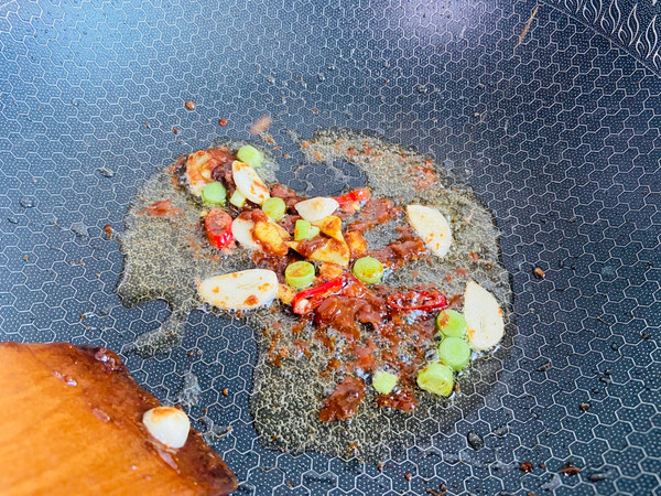 放入芹菜段,淋入少许热水翻炒至断生即可