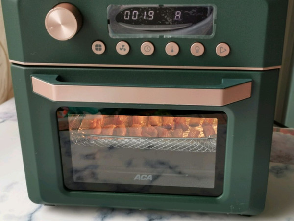 ACA空气炸烤箱选择空气炸功能180度预热好,放入炸网烤20分钟。