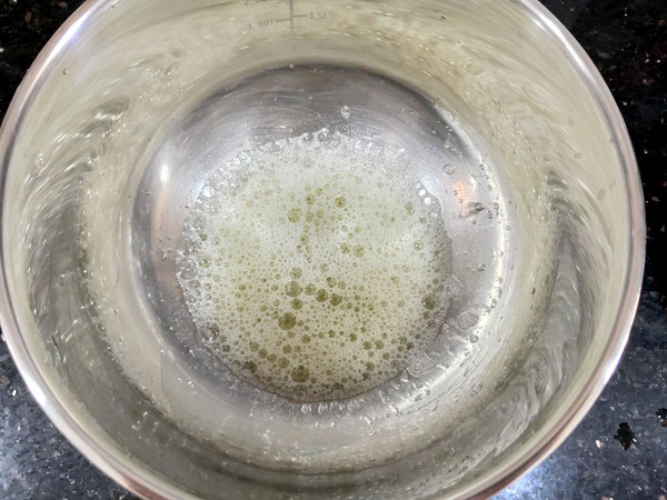 开始打发蛋白。滴几滴柠檬汁或者白醋,中速打发到鱼眼泡出现。