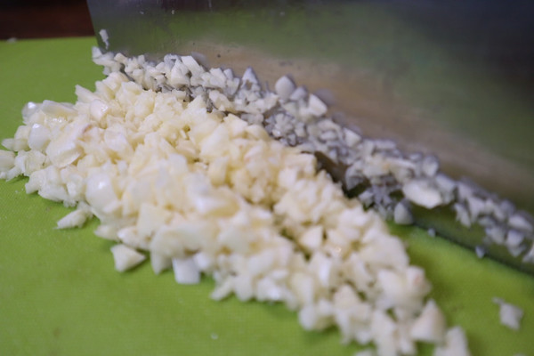 锅内倒油,加入蒜末翻炒,出小气泡,关火,备用