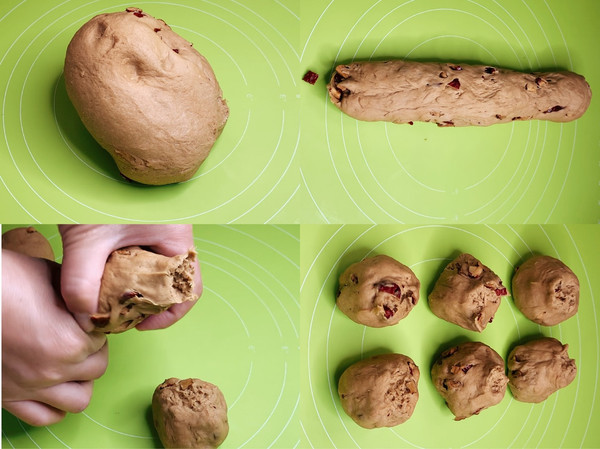 醒好的面里加入红枣碎揉均匀