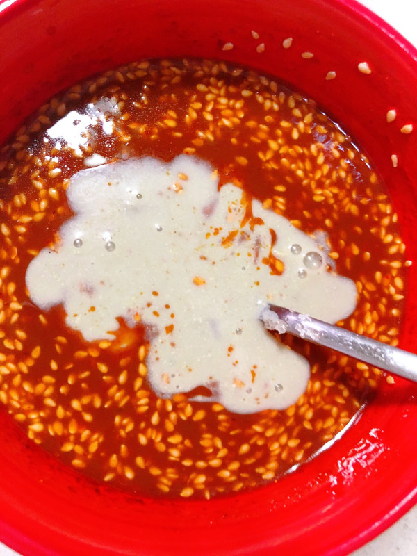 蒜末 白芝麻 孜然粉 辣椒粉放入碗中!