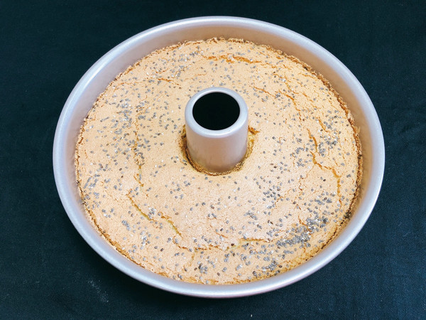 脱模后的蛋糕,表面的奇亚籽烤后脆脆的