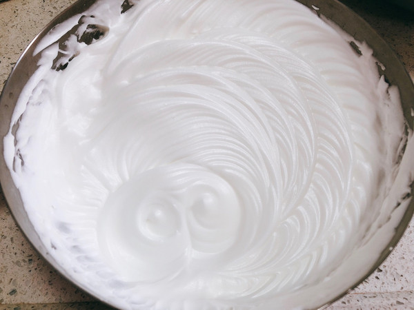 蛋白霜的制作:蛋白+玉米淀粉+柠檬汁+木糖醇,打发至干性发泡