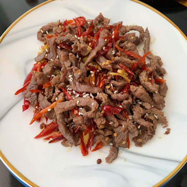干辣椒炒牛肉丝,让人停不下来的快手下饭菜(