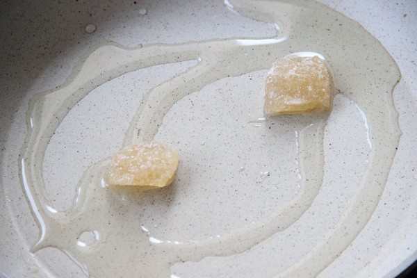 锅中放入少许油,加入10g冰糖(2-3颗)煸到出油上色。