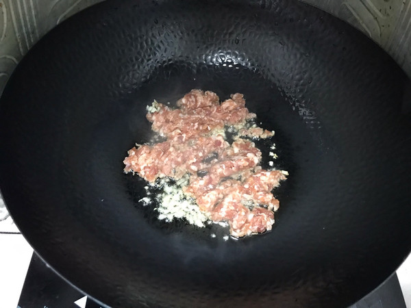 肉末里加入适量的盐、食用油、生抽抓拌均匀腌制十分钟左右