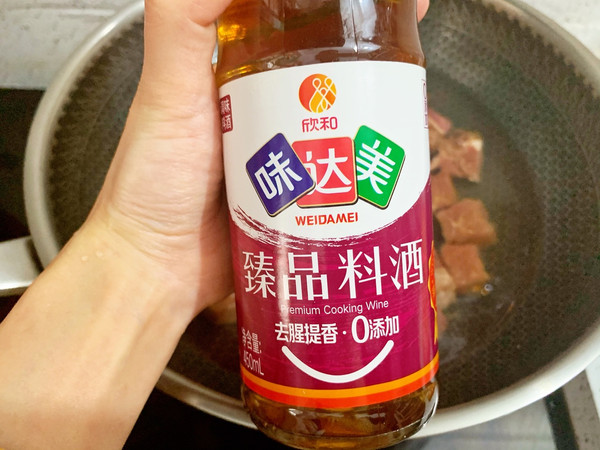 加入葱姜蒜、八角、桂皮、香叶、干红辣椒炒出香味