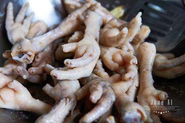 买回来的鸡爪,先进行第一步的处理,去掉脚趾甲,冷水入锅焯烫去血污。