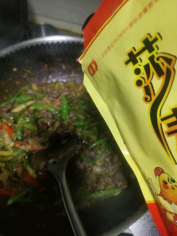 加入鸡精,有泡椒的盐味合适不用再放盐了