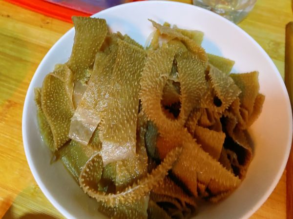 毛肚稍微焯一下水,一两秒就好,因为一会还要炒,焯水时间长毛肚就老了