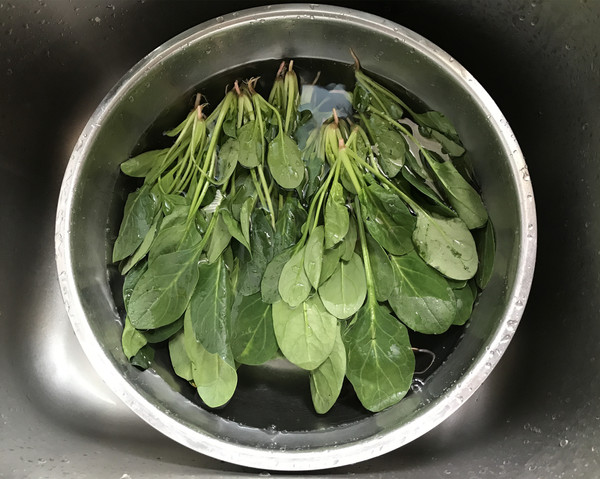 菠菜摘去黄叶老梗,用清水浸泡10分钟后清洗干净