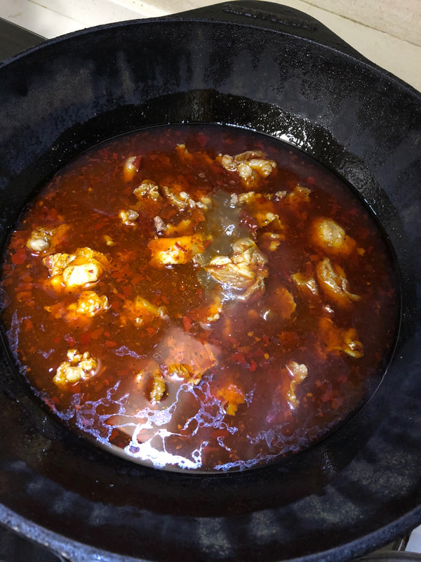 第四步:将牛腩放入火锅料里炖煮一个半小时