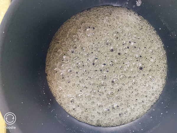 一直都到糖浆微黄关火,倒入小苏打不停的搅拌,不知道为啥我的小视频发不上来