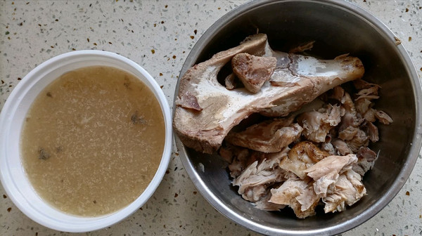 取出骨头,戴上手套剥削肉,把骨头和肉分开