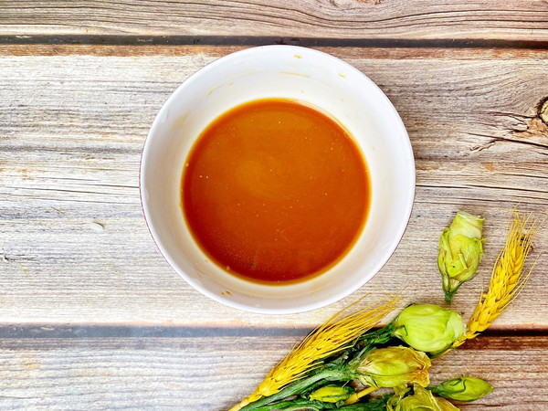 腌制的时候用一个小碗准备调味汁:生抽+香醋+白糖+2-3克淀粉+大半碗清水+根据个人口味加1~2克盐,调匀备用。