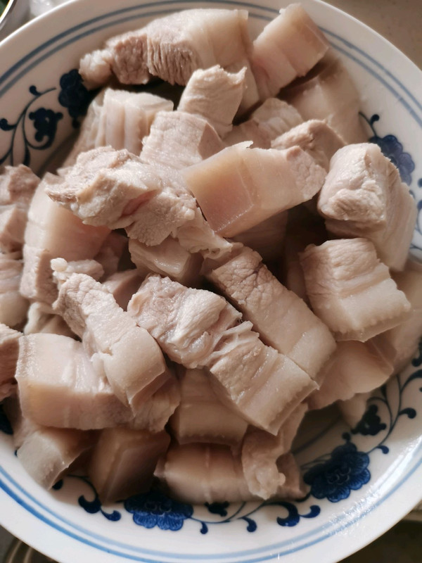 五花肉切小块冲洗干净,冷水下锅加料酒,大火烧开,两分钟捞出