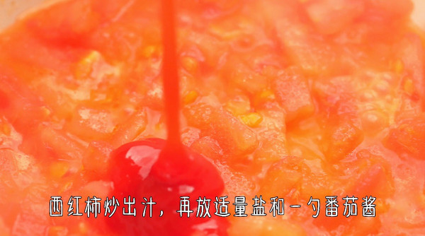 留底油,放西红柿➕盐➕番茄酱炒出汁