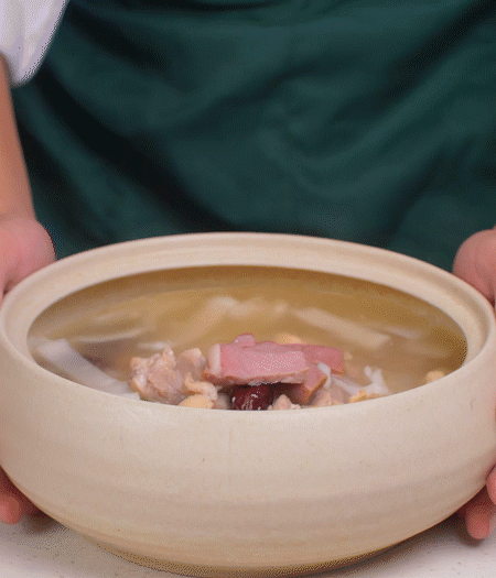 把鸡、火腿、椰子水、椰肉、姜、红枣放入电饭锅,按下煲汤功能。
