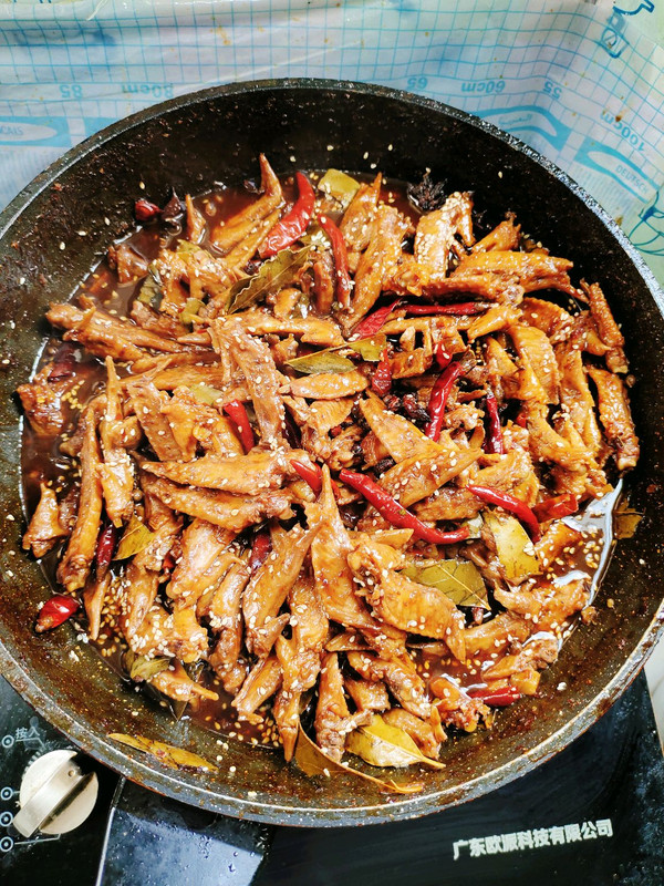 时间到,大火收汁儿,起锅前放入适量的鸡精和熟白芝麻翻炒均匀即可!