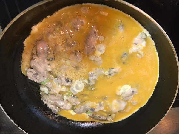 下入海蛎面糊小火慢煎