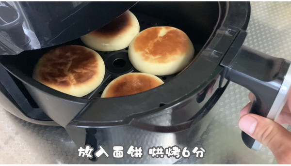 空气炸锅150°预热 放入刷了油的小饼 烤6分钟