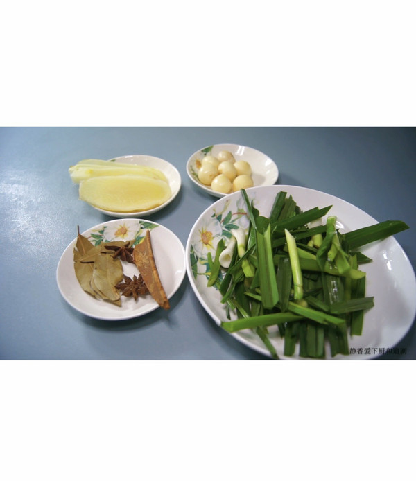 鹅肉先清洗干净然后沥干水分,加入姜片,盐,胡椒粉腌制一会