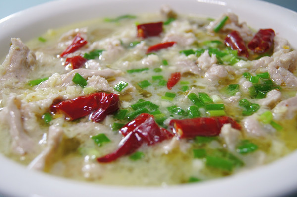 调小火,把肉片一块块放进去,不要翻动,避免脱浆;等肉片全部放进去后慢慢调大火煮开
