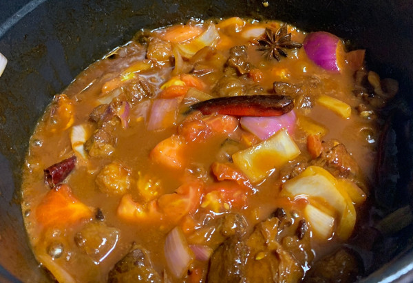 牛肉炖8分熟加入另外两个西红柿,和土豆