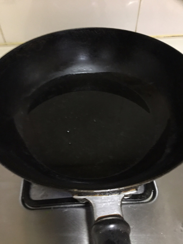然后加入备好的大蒜、青红椒粒爆香,倒入少许料酒
