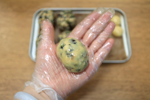 皮馅比例2:8,馅料40克/个,皮子10克/个;馅料要用力捏揉成球;