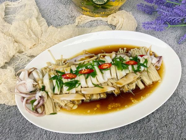 材料准备 鱿鱼一个 金针菇100克 小米辣一个