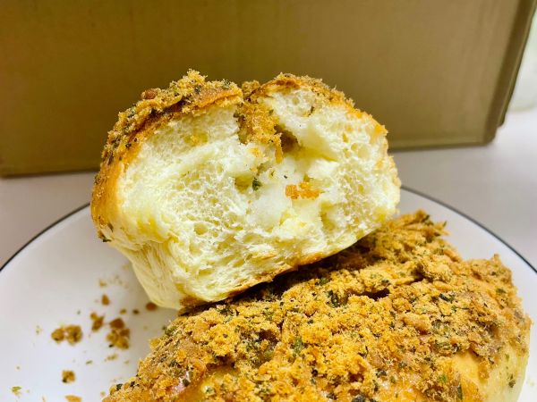 一口下去,同时吃到面包,土豆泥,蛋黄酱,肉松,超级美味~