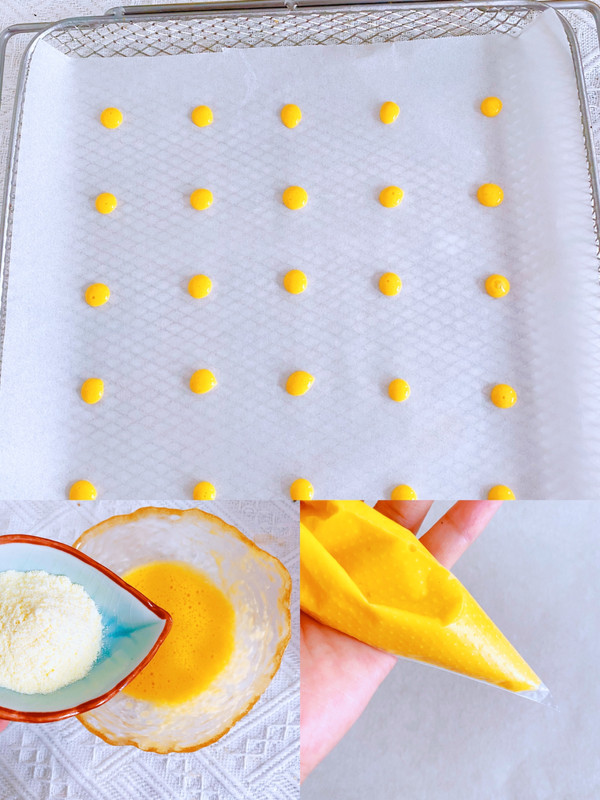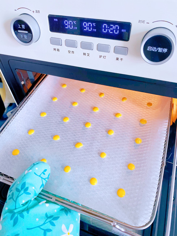 滴滴~~完成啦!一般荷包蛋溶豆的配方只需要一个蛋黄就够用了,剩下的别浪费直接做成蛋黄溶豆哦!