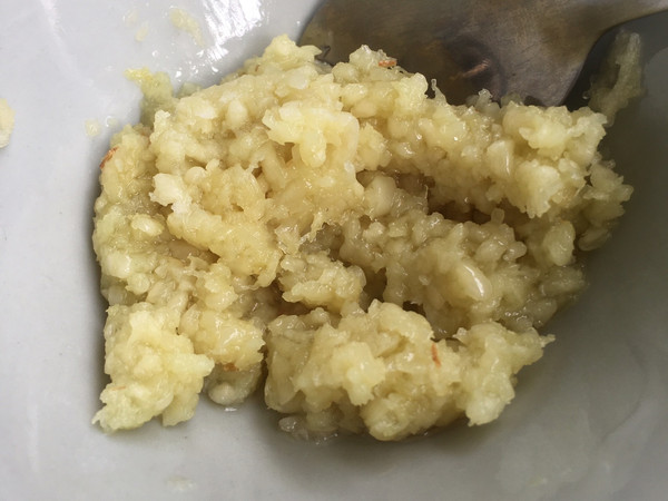 蒜头剥去外皮冲洗干净压成泥状。