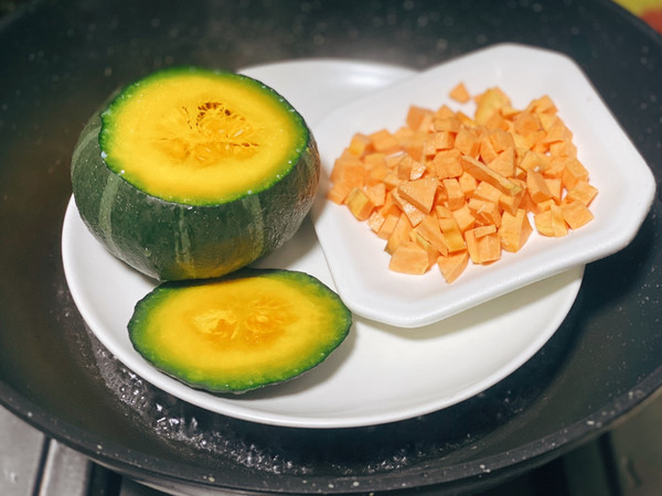南瓜,番薯,大米蒸熟后去准备;