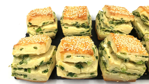 葱千层小方,表面焦脆,内层松软,葱香味扑面而来。(
