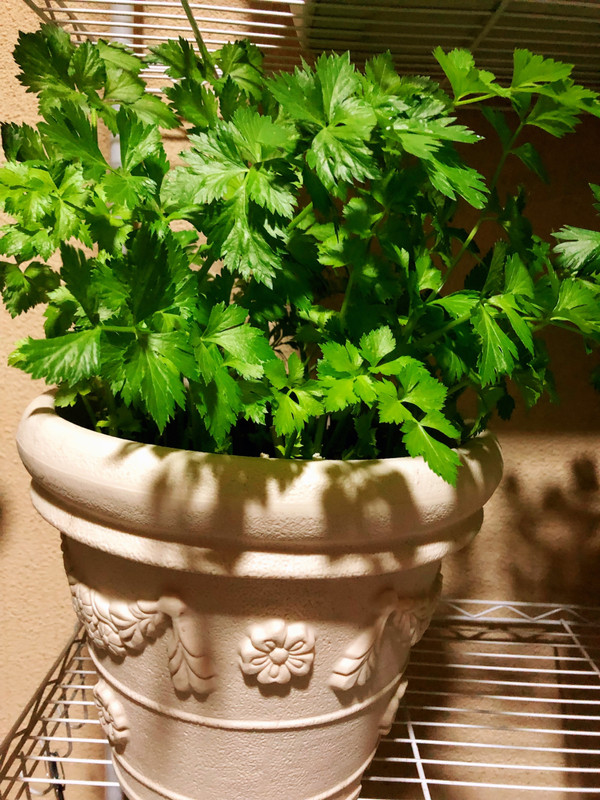 阳台一角郁郁葱葱的真的很温馨,再过一周前面种的芹菜就2周了,里面有部分芹菜就可以剪下来食用了,菠菜也是的,还有小葱随时可以剪一根切碎来给一盘美食做点缀。