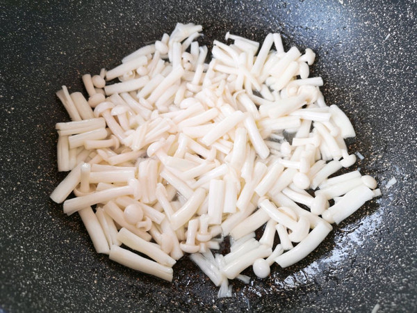 炒锅内倒适量的食用油烧热,下入海鲜菇翻炒至变软。