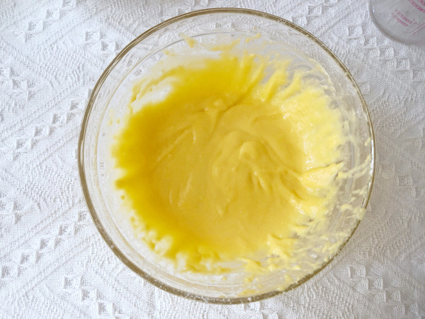 加入三分之一的蛋白到蛋黄糊中,翻拌均匀