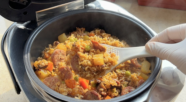 香喷喷的腊肠焖饭就做好啦!真的是太香了!