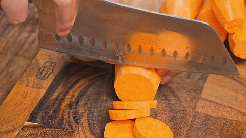 2,将蒸好的红薯取出放至不烫手,用锡纸将红薯包住,漏出切面