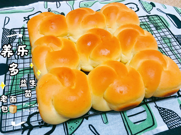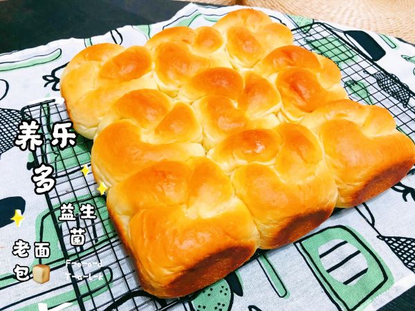放凉就可以食用啦,看这柔软拉丝的效果。 今天和大家分享的是养乐多益生菌老面包的做法,一般来说老面包的配方中都是需要加入中种面团或者老面,但是提前制作的话很费时间,我在今天的配方里面加入了养乐多,可以让面包的口味和加入了老面的老面包口味差不多,而且还增加了一些益生菌饮料独特的香味,这款面包低糖,可以作为早餐三明治的材料代替白吐司,而且有独特的风味,如果早餐吃腻了白吐司换个味道试试吧!