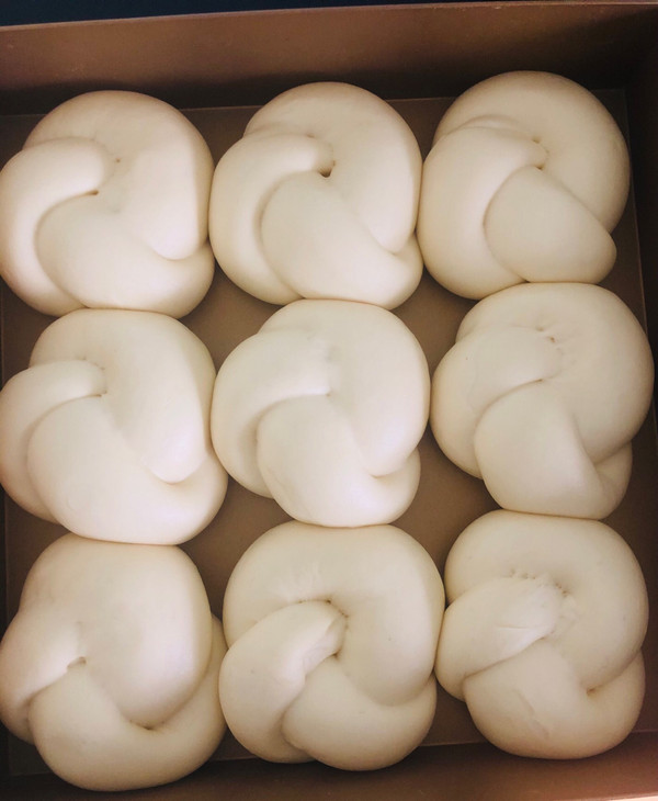 全部操作完放入烤盘中,我的烤盘尺寸是28×28×5公分,温暖处发酵到两倍大,我用烤箱发酵功能35度,湿度75%,发酵了一小时。
