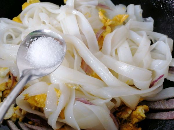 装盘放上辣椒点缀,一道快手又美味的鸡蛋炒河粉就完成了。