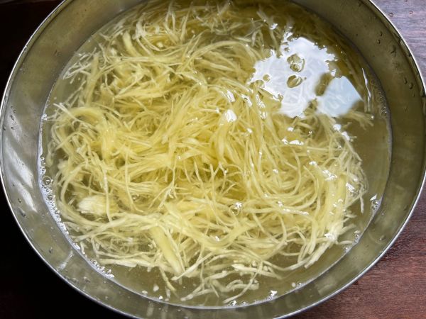 我喜欢把纯净水前面就放冰箱冷藏一下,把夹出来的金瓜丝泡纯净水中一会。