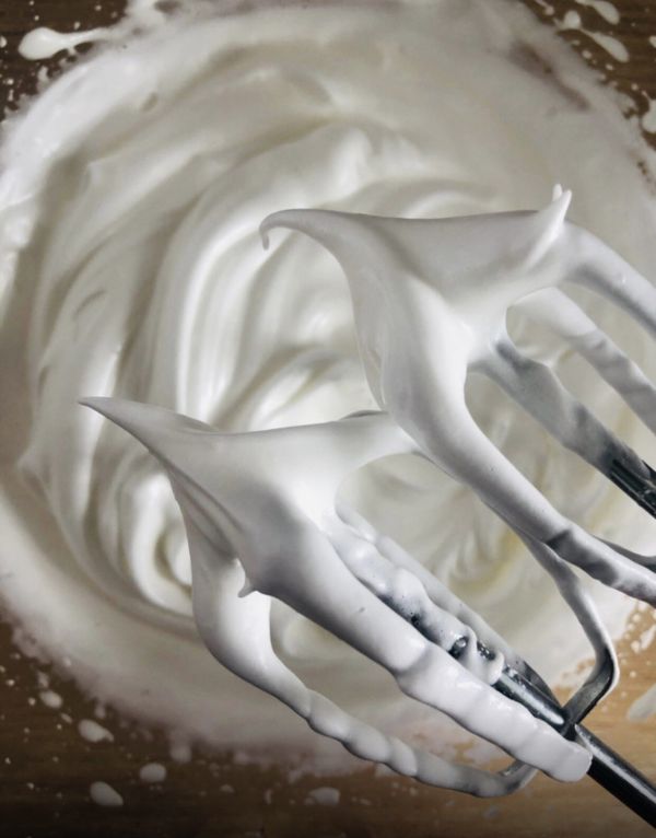 电动打蛋器高速五档两分钟,中速三档一分钟,最后低速一档一分钟。打发到图片中的状态,湿性发泡偏干一些。 ❗每个人的打蛋器功率不一样,我给的时间仅供参考,具体以实际状态为准。