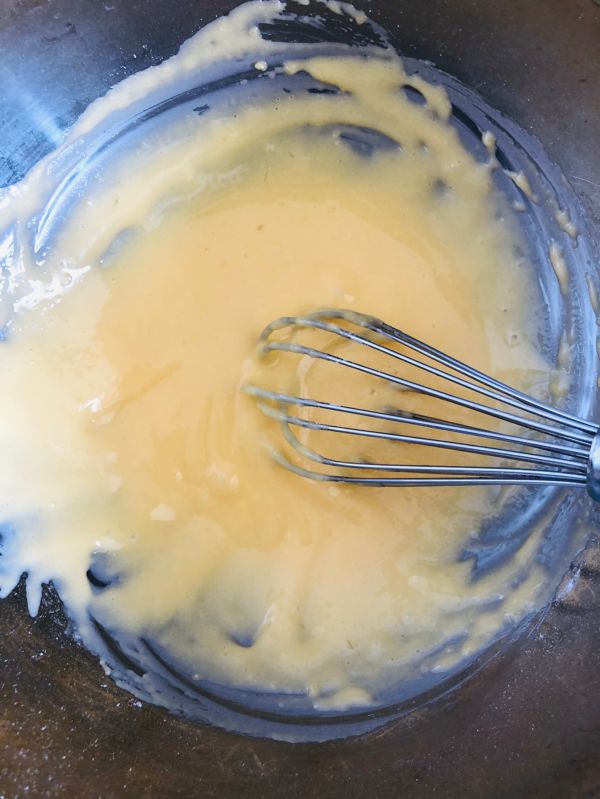 取三分一蛋白霜加入蛋黄糊中翻拌均匀,注意手法,不要消泡了。