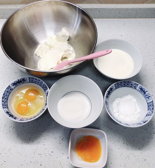 提前准备好所有材料,这里需要注意淡奶油奶油奶酪还有鸡蛋和蛋黄都要用室温的。