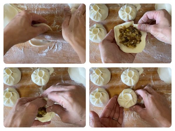 均匀捏褶 捏紧收口处 包成包子。